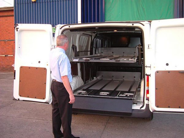 The DD-EX2 is the only double deck system engineered to fit a mid-sized cargo van. The system allows four cots, three cremation containers, or two air trays to be transported safely by one person. The system increases vehicle efficiency by doubling the carrying capacity while minimizing mileage costs required for multiple transport trips.