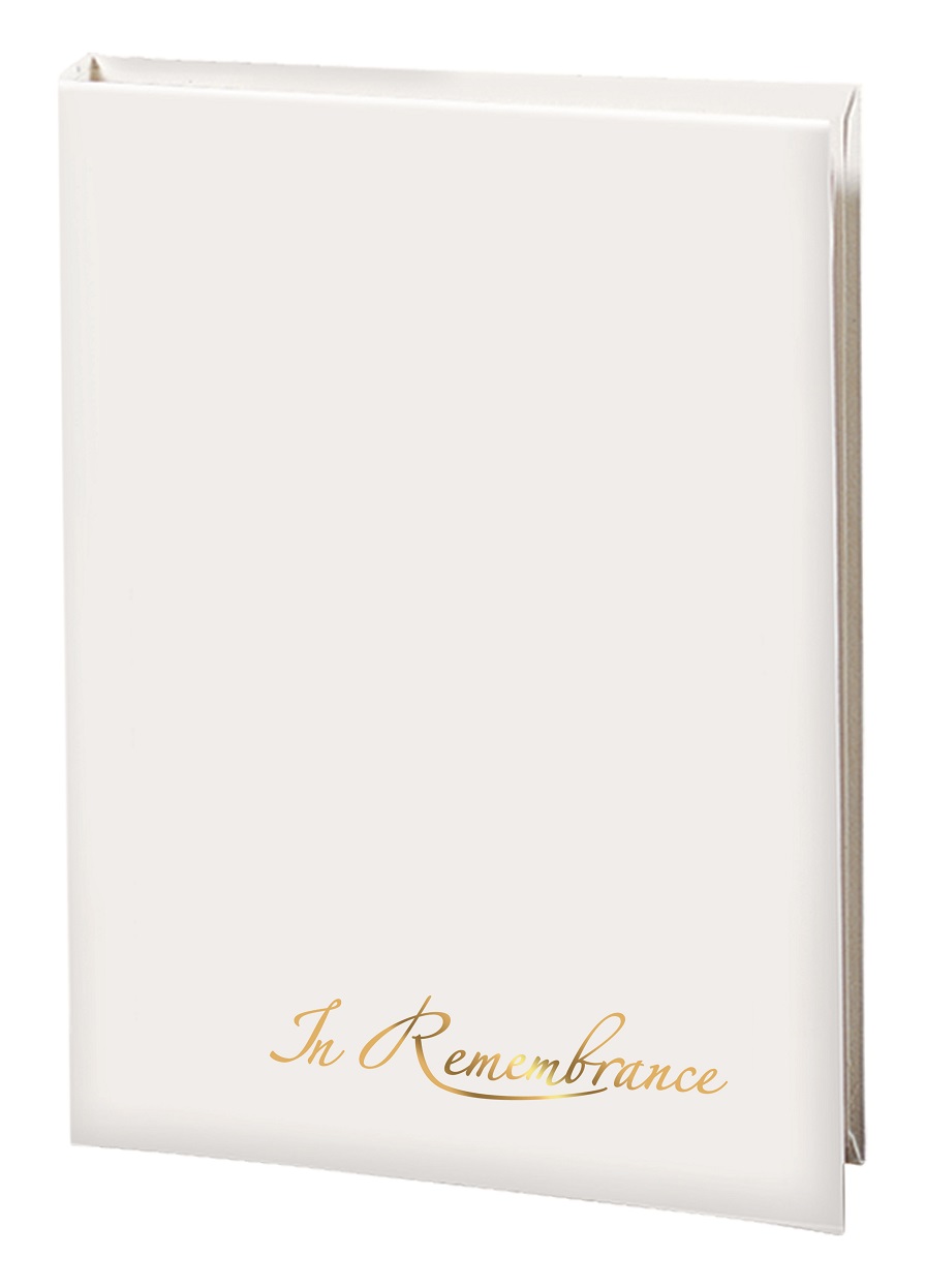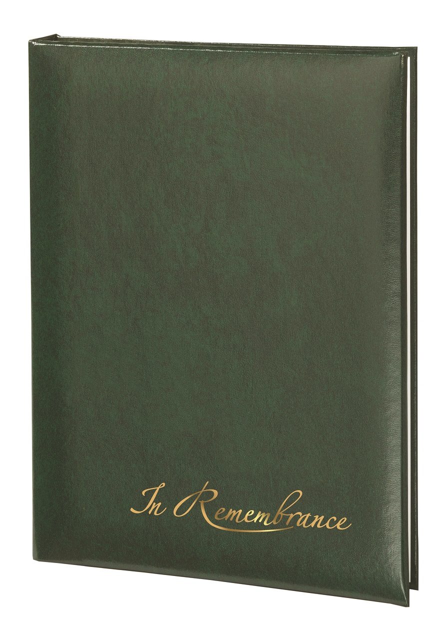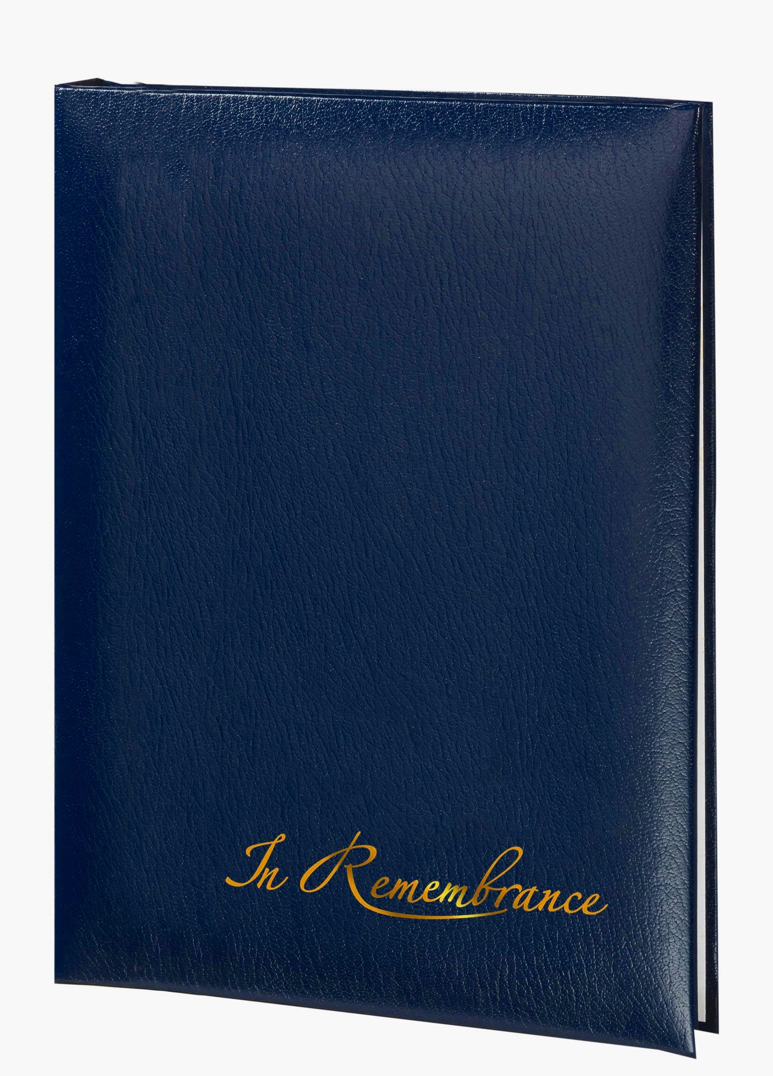 Value Series Funeral Guest Book features a simple and classic design. “In Remembrance” text is stamped in gold foil. This Value Series Funeral Guest Book is available in a multitude of colors: Black, Burgundy, Green, Navy Blue, and White.